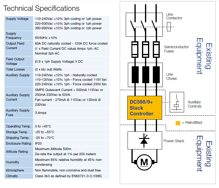 To preserve your investment, Parker SSD Drives has developed a DC598+/DC599+ power stack controller offer specially aimed at retrofit applications and based on the DC590+ controller.